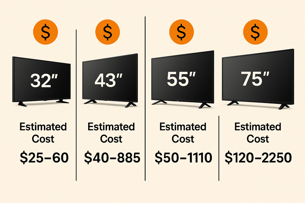 Understanding the cost requires looking at how TV dimensions affect packaging and shipping methods. Here’s how much it typically costs to ship some of the most popular TV sizes.