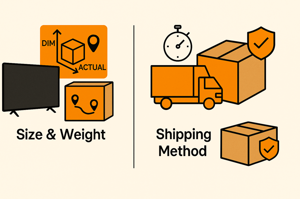- Example: A lightweight 65″ TV in a bulky box may cost the same as a much heavier item, simply because of its size.