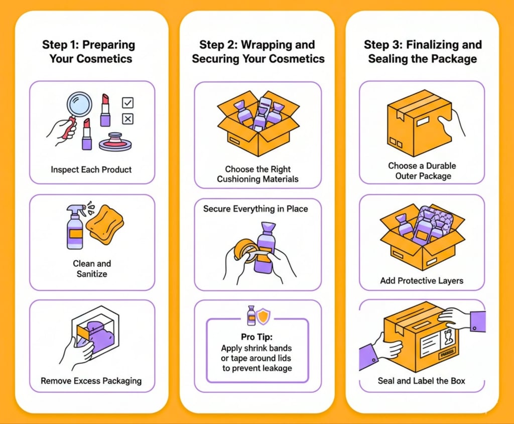 Here’s a detailed step-by-step guide to help you protect your cosmetics throughout their shipping journey.