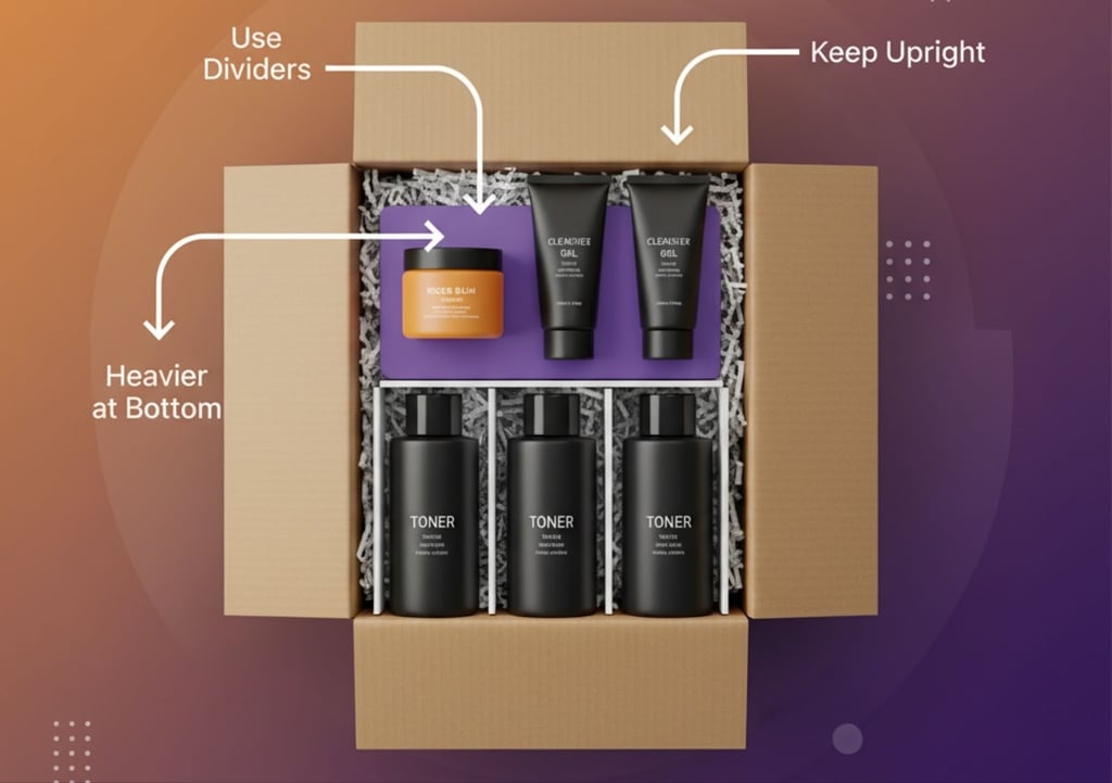 How you place skincare products inside a box determines whether they stay upright, collide, or shift during transit. This section breaks down how to arrange items safely.