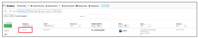 1. To open the order, click on the corresponding ship ID.
