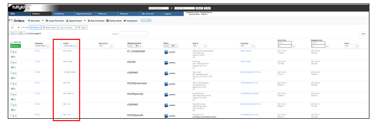 1. In the Orders tab, locate the order number you want to generate a return label for.